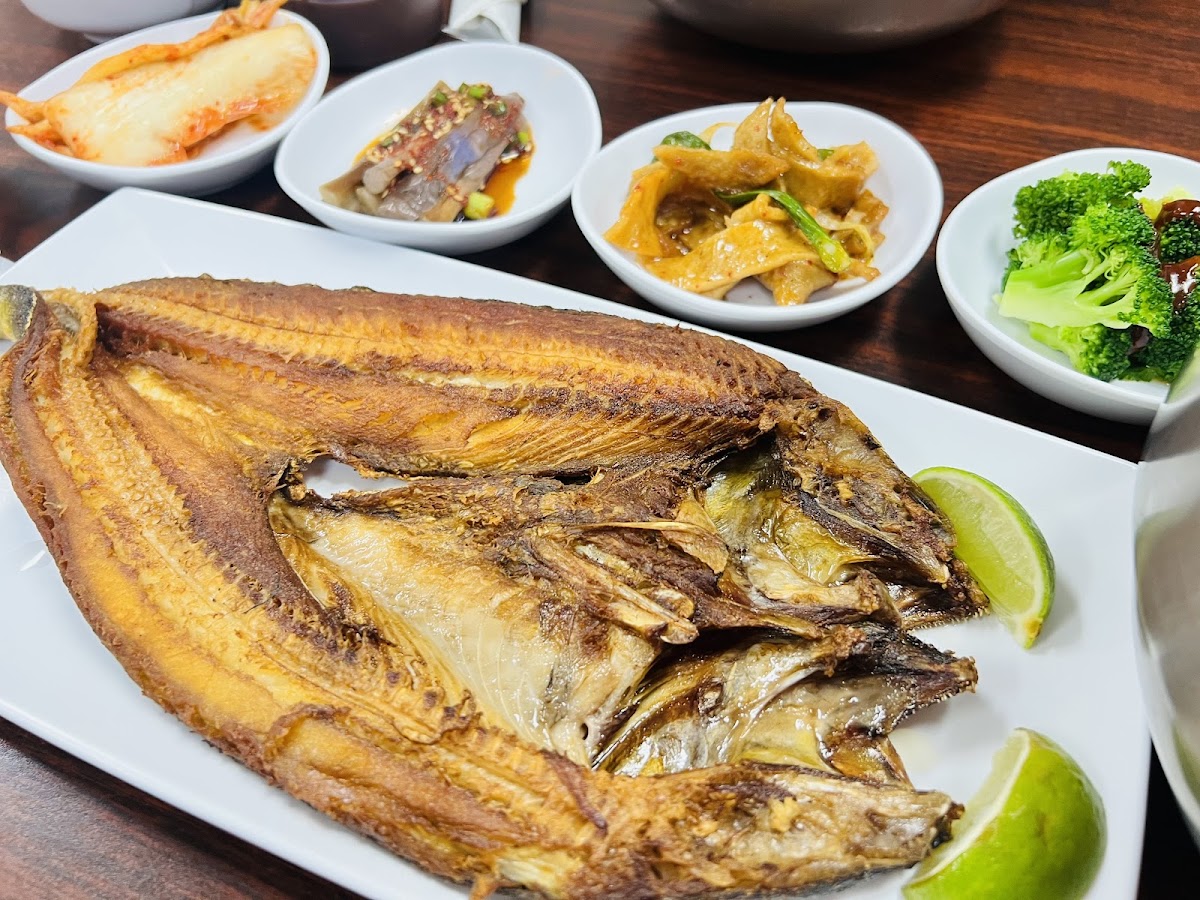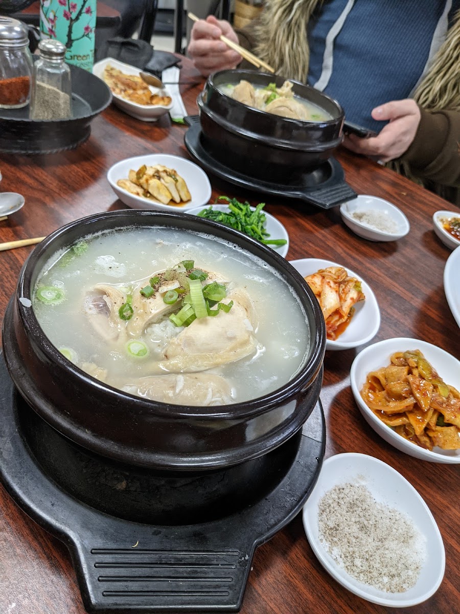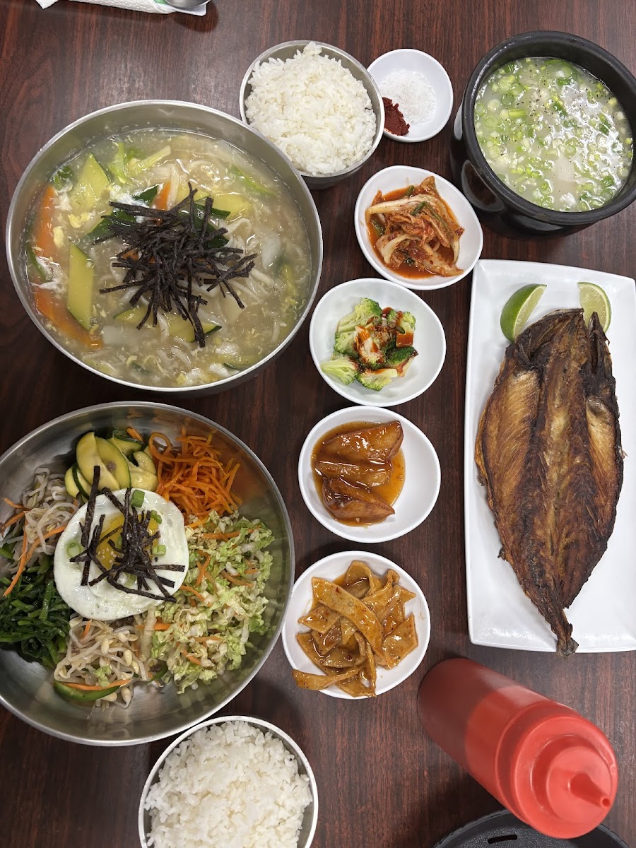 Among the highlights of the menu is the Kimchi Pancake, a crispy, savory delight made with fermented kimchi that offers a perfect balance of tanginess and spice. If you’re craving something hearty and warming, the Spicy Seafood Soup is a must-try. It’s loaded with fresh seafood, rich in flavor, and has just the right amount of kick. For a more substantial dish, the Godeungeo Gui, a grilled mackerel, is seasoned and cooked to perfection, offering a smoky flavor that pairs wonderfully with a side of rice. Another standout dish is the Samgye-Tang, a comforting ginseng chicken soup, known for its nourishing qualities, perfect for rejuvenating your body and spirit.
